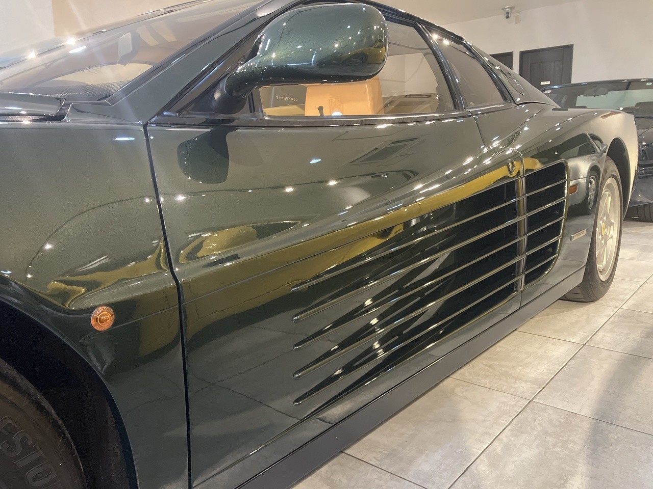 フェラーリとしては定番のタンカラーも、濃緑のボディカラーに非常にマッチしています。