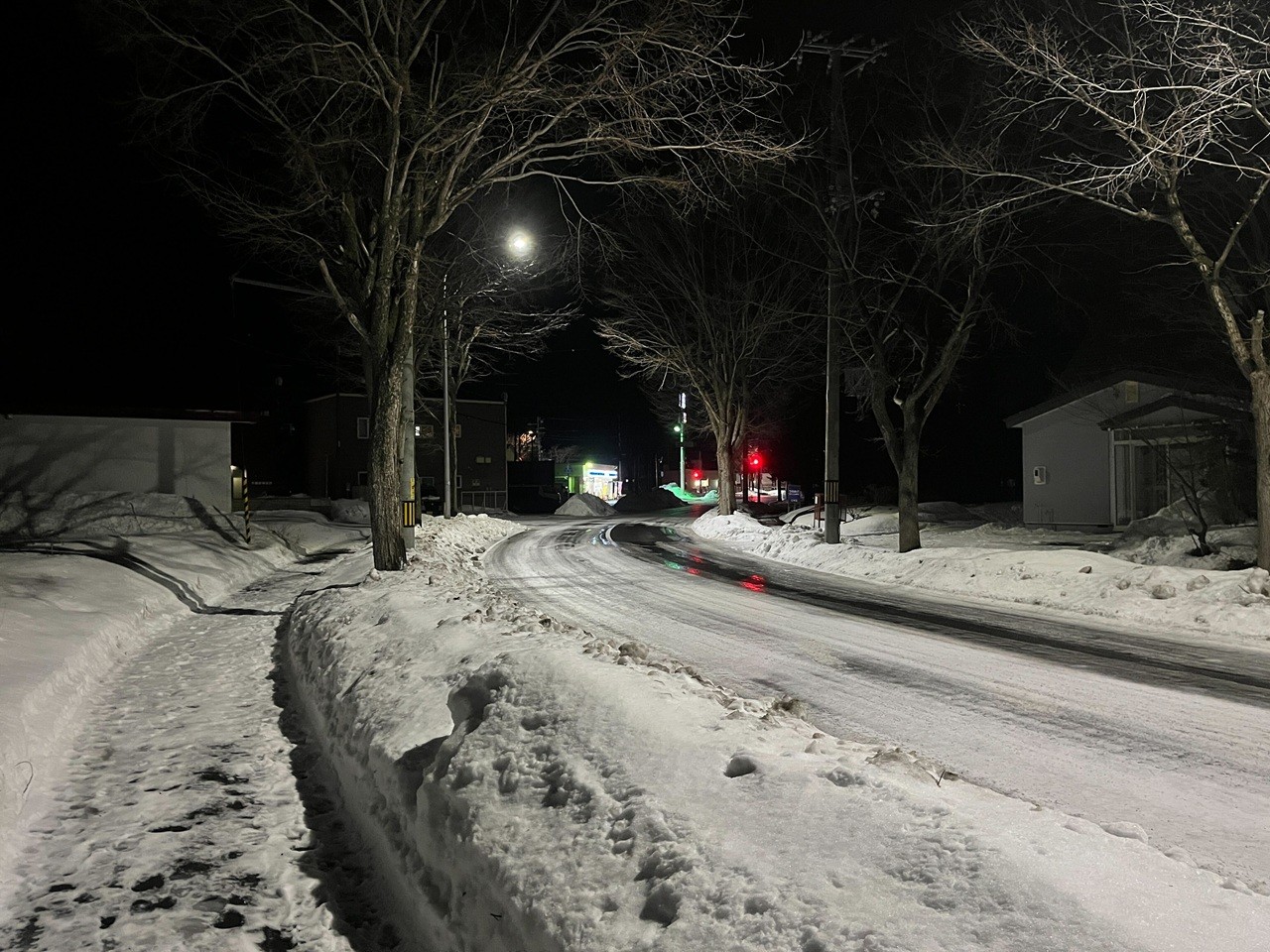 まだちらほら路面は出ていましたが、完全に凍結、もしくは積雪路面でした。