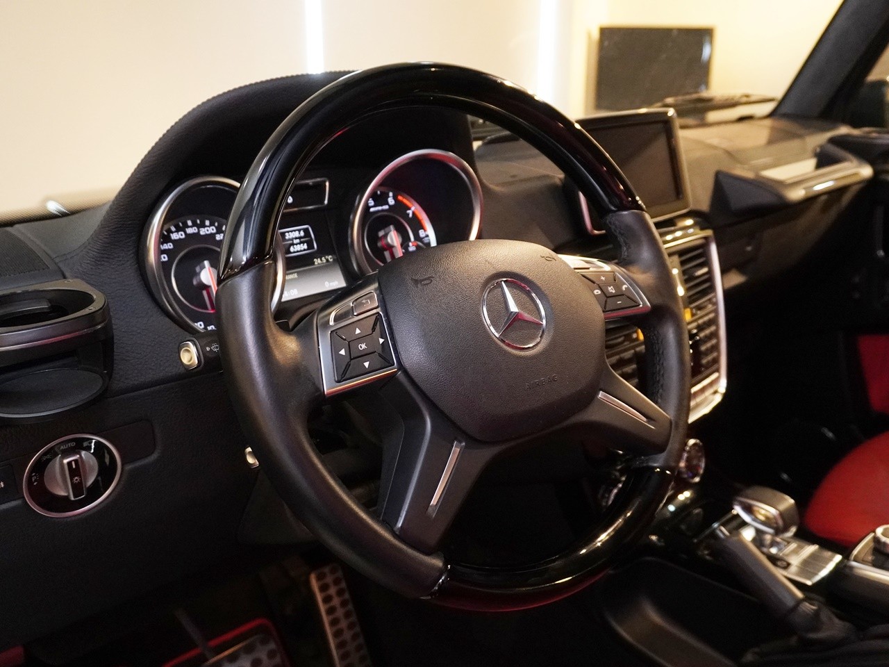 さらにインテリアにもこだわりがあり、デジーノインテリアでレザーのダッシュボード・レッドのレザーシートがエクステリアのカラーとのコーディーネートが素晴らしいと言える組み合わせで、人気の高いゲレンデの中でも大変希少な組み合わせとなっています。