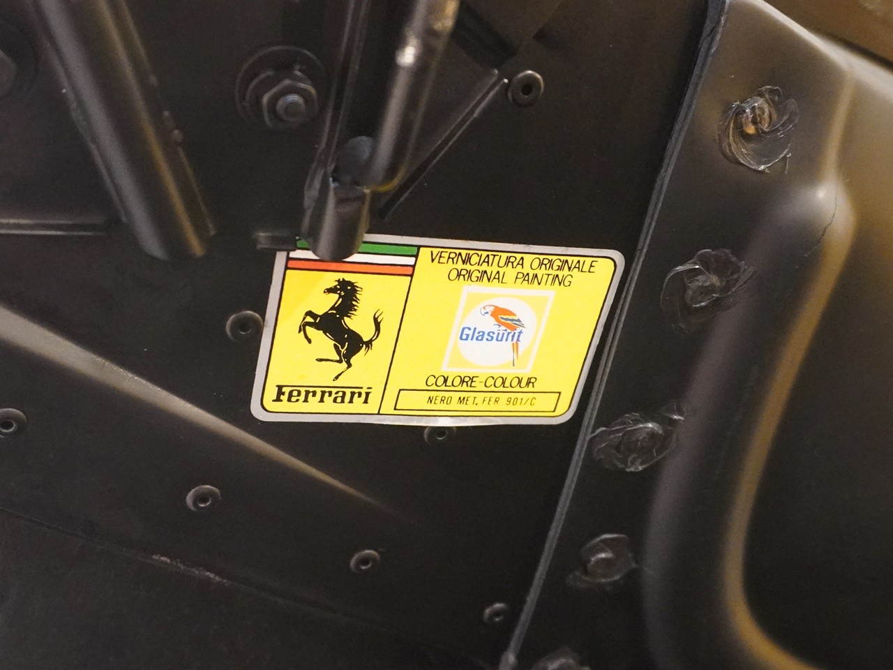 テスタロッサはイタリア語で「赤い頭」の意味もあり、エンジンヘッドはその名の通り赤いヘッドカバーが採用されています。ボディーカラーも赤(ロッソ)が圧倒的に多いですが、なかでもこちらの個体の黒メタ(ネロメタリック)は希少なカラーです。
