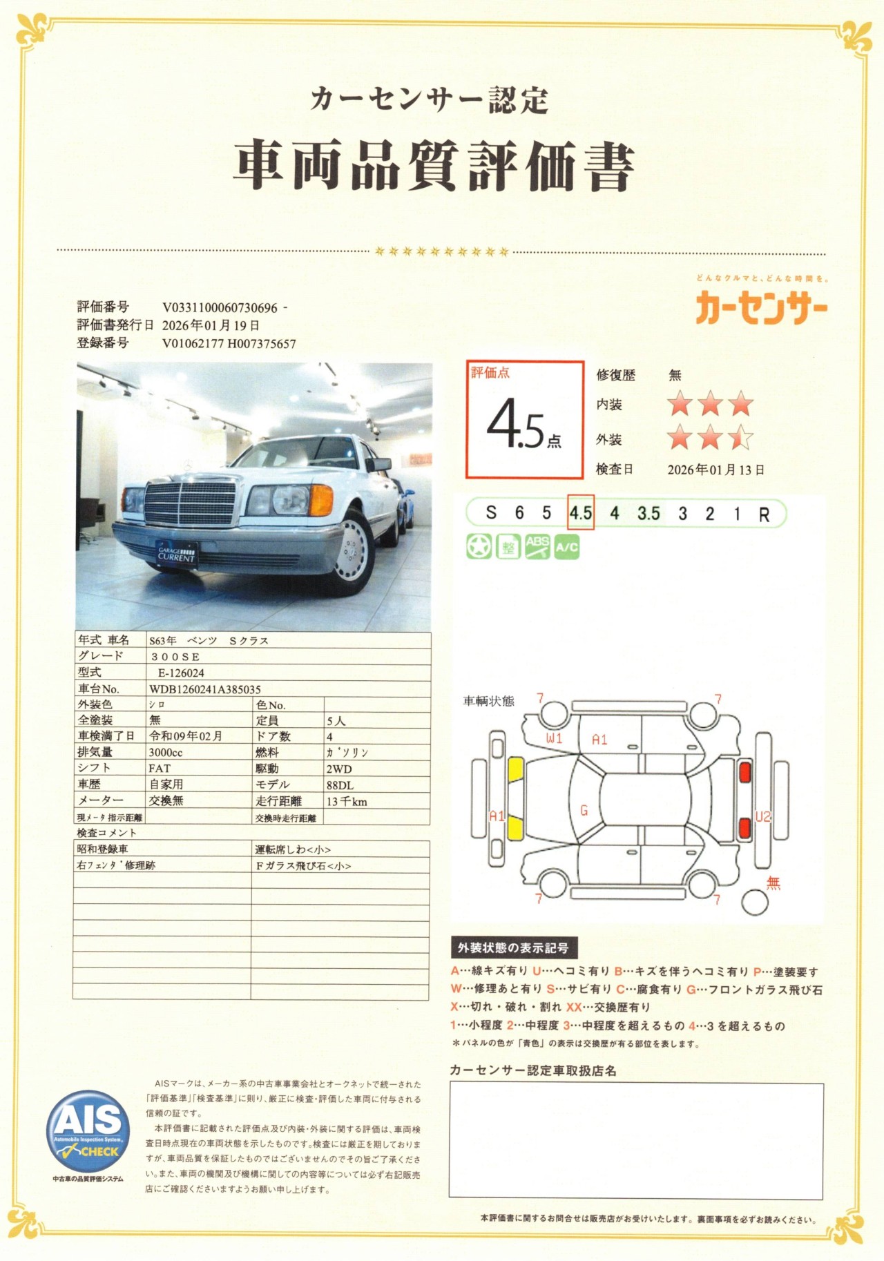 126乗るなら、最高グレードの560SELに目が行きがちですが、基本設計は変わらず、リアのレベライザーがなくて2気筒少なくて標準ボディの300SE侮れません。