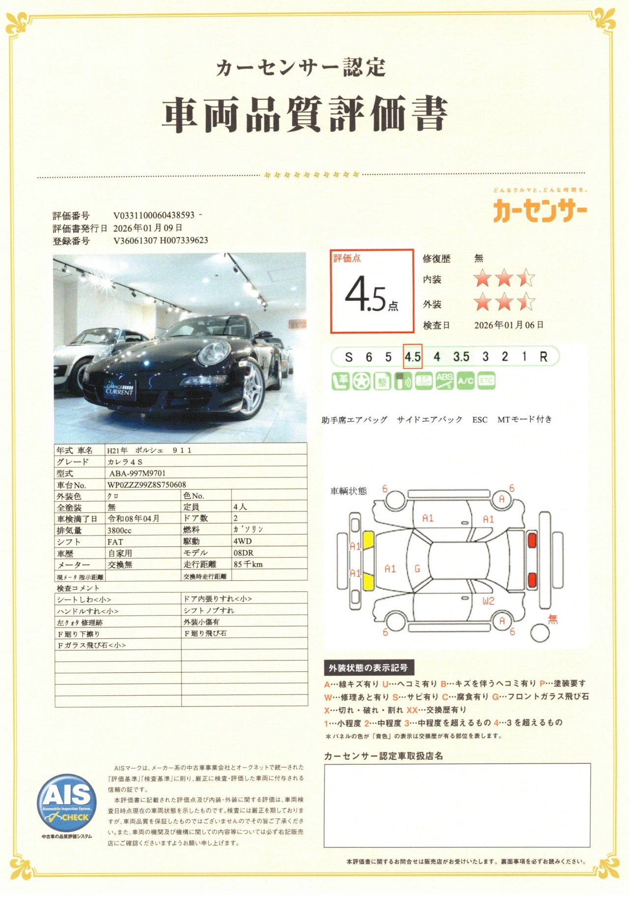 このタルガ4Sは、997前期型の最終モデルにあたり、水冷ポルシェ初期の課題だったインターミディエイトシャフト(IMS)も対策済み。5速ティプトロニックSと4WDシステムを組み合わせることで、卓越した安定性とトラクション性能を発揮し、路面を問わないダイナミックな走りを存分に楽しめます。