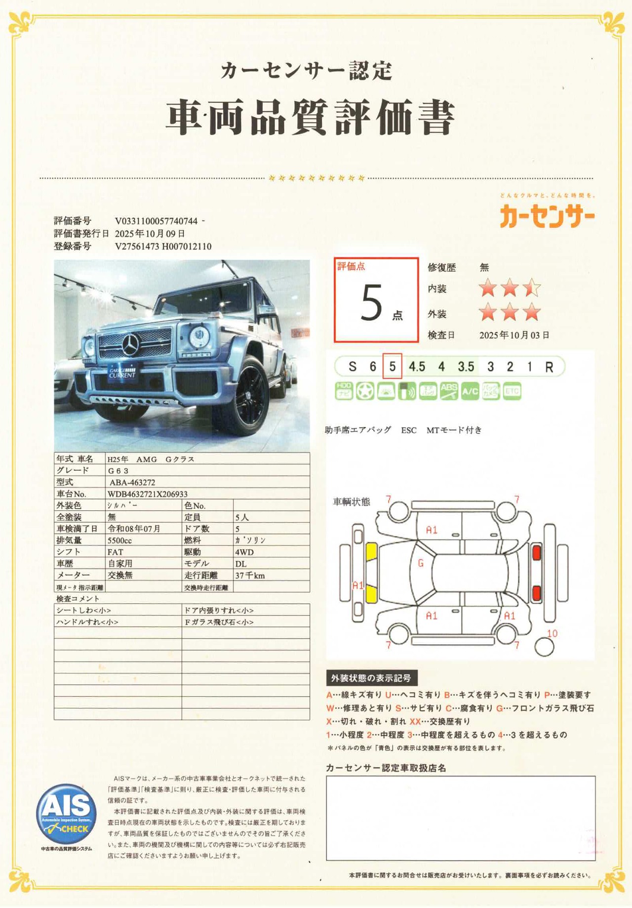 2013年 AMG G63/デジーノエクスクルーシブパッケージ/生産終了モデル/ディーラー車/過去販売車輌/