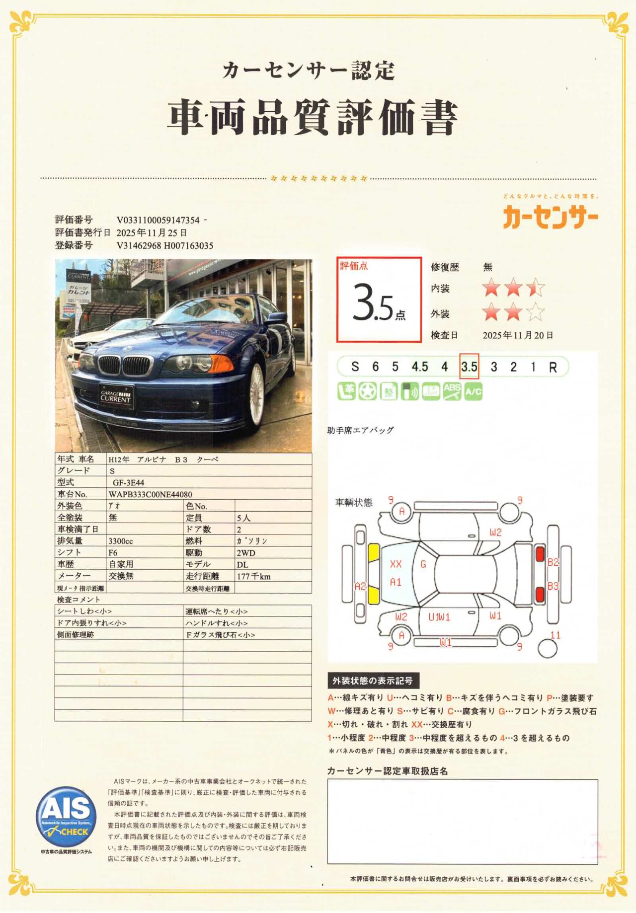 2000年 ALPINA B3 3.3クーペ(E46)/ディーラー車/生産終了モデル/車検2年付き/