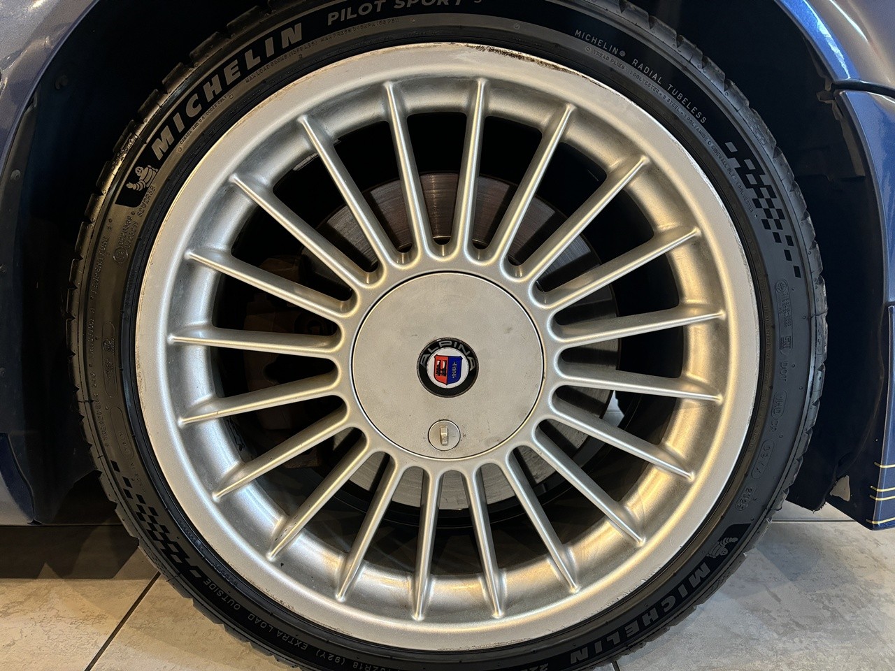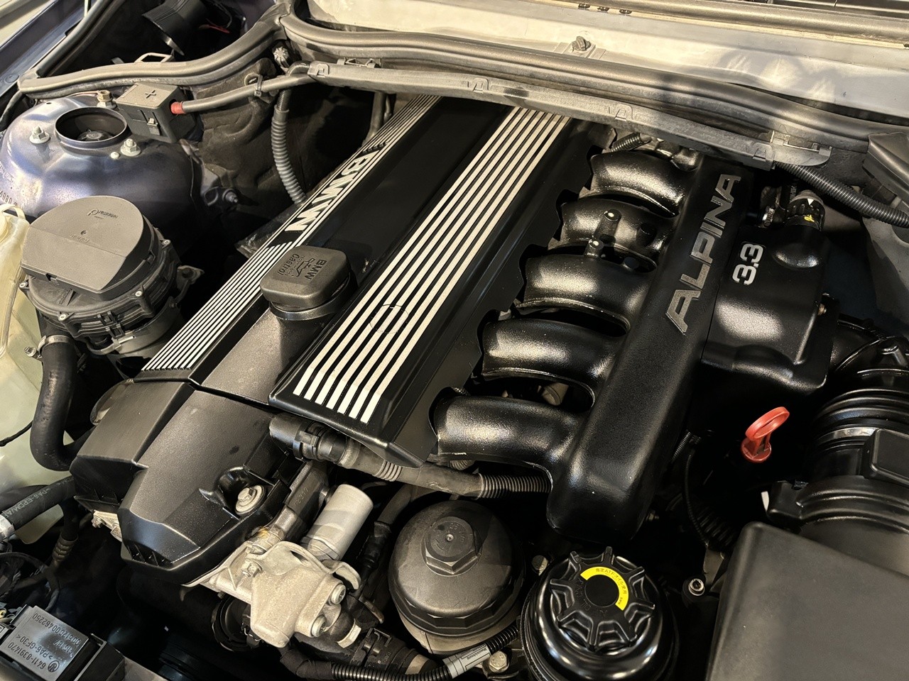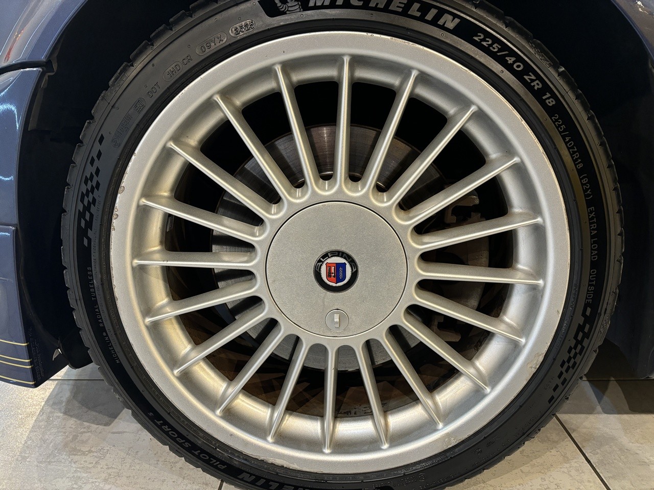当時の3シリーズとしては大径の18インチホイールを履きながらも、路面の凹凸をしなやかに受け流すその足回りは、まさに「アルピナマジック」。街乗りでの快適性と、ワインディングでの鋭い回頭性を高次元で両立しています。 「移動手段としての快適さ」と「ドライビングの純粋な喜び」が見事に調和した、まさに“走る芸術品”です。