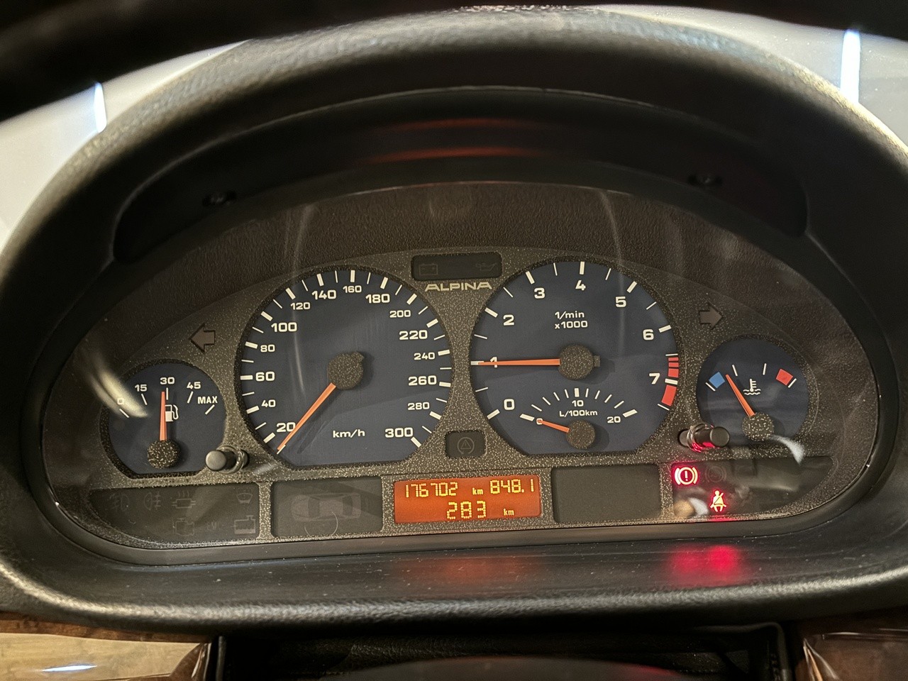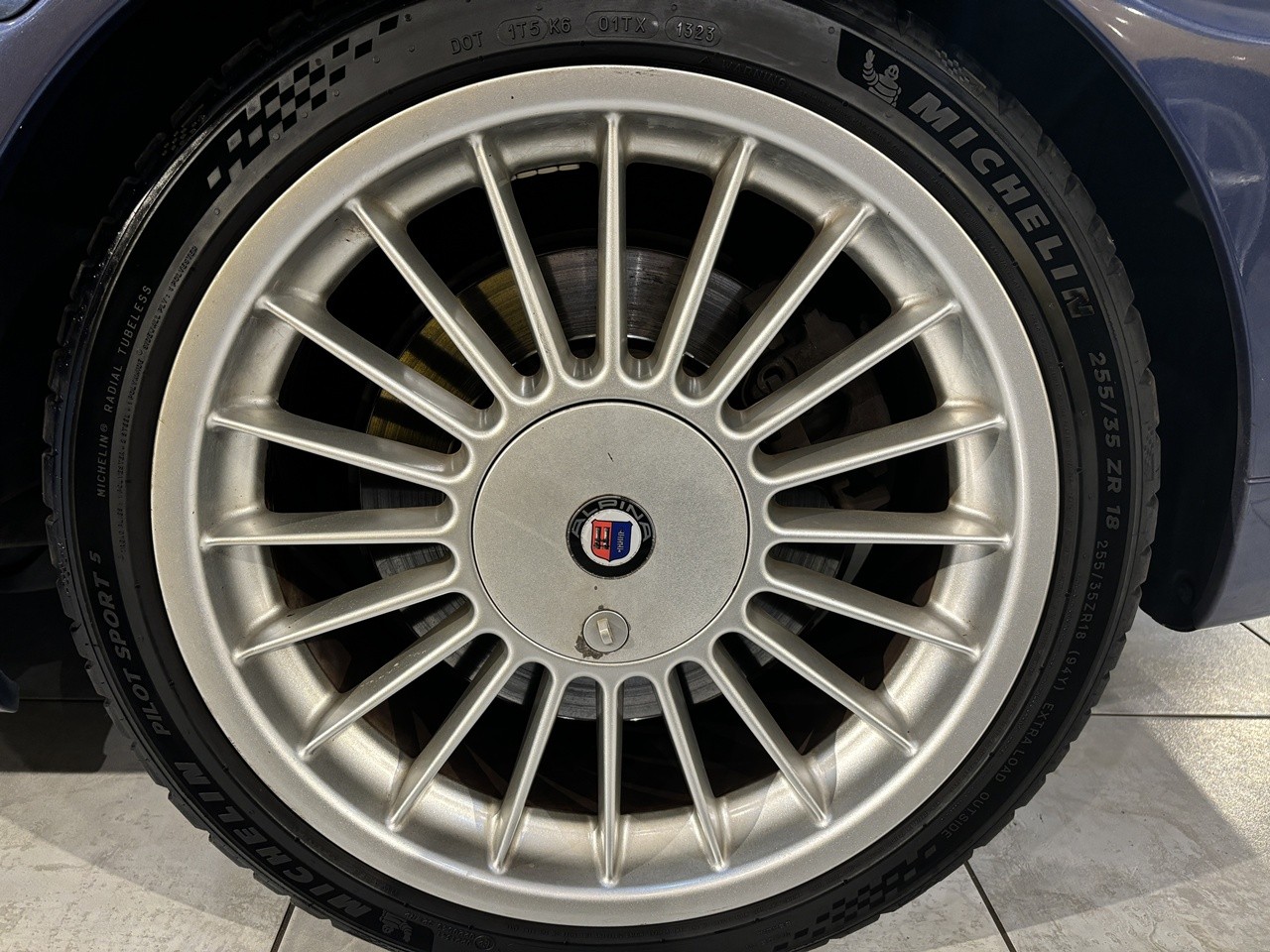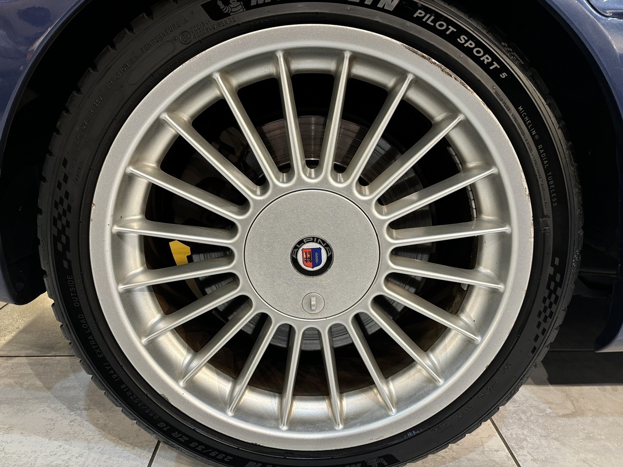 当時の3シリーズとしては大径の18インチホイールを履きながらも、路面の凹凸をしなやかに受け流すその足回りは、まさに「アルピナマジック」。街乗りでの快適性と、ワインディングでの鋭い回頭性を高次元で両立しています。 「移動手段としての快適さ」と「ドライビングの純粋な喜び」が見事に調和した、まさに“走る芸術品”です。