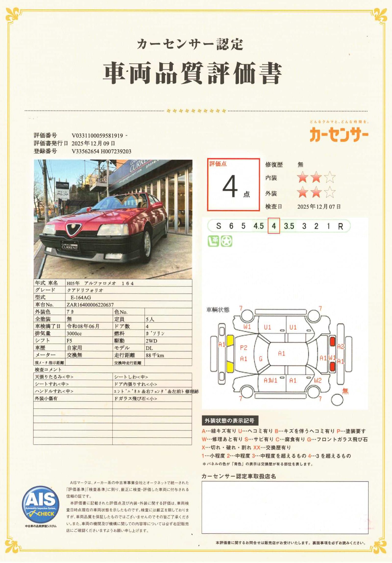 アルファロメオ 164 クアドリフォリオヴェルデ 5速MT SOHC V6 3000cc ブッソサウンド 正規ディーラー車 ユーザー様直接買取車輌