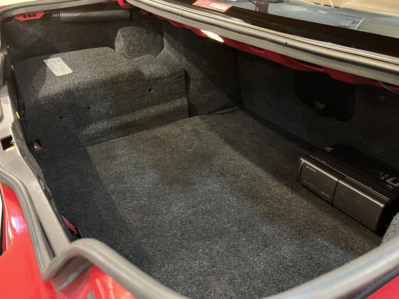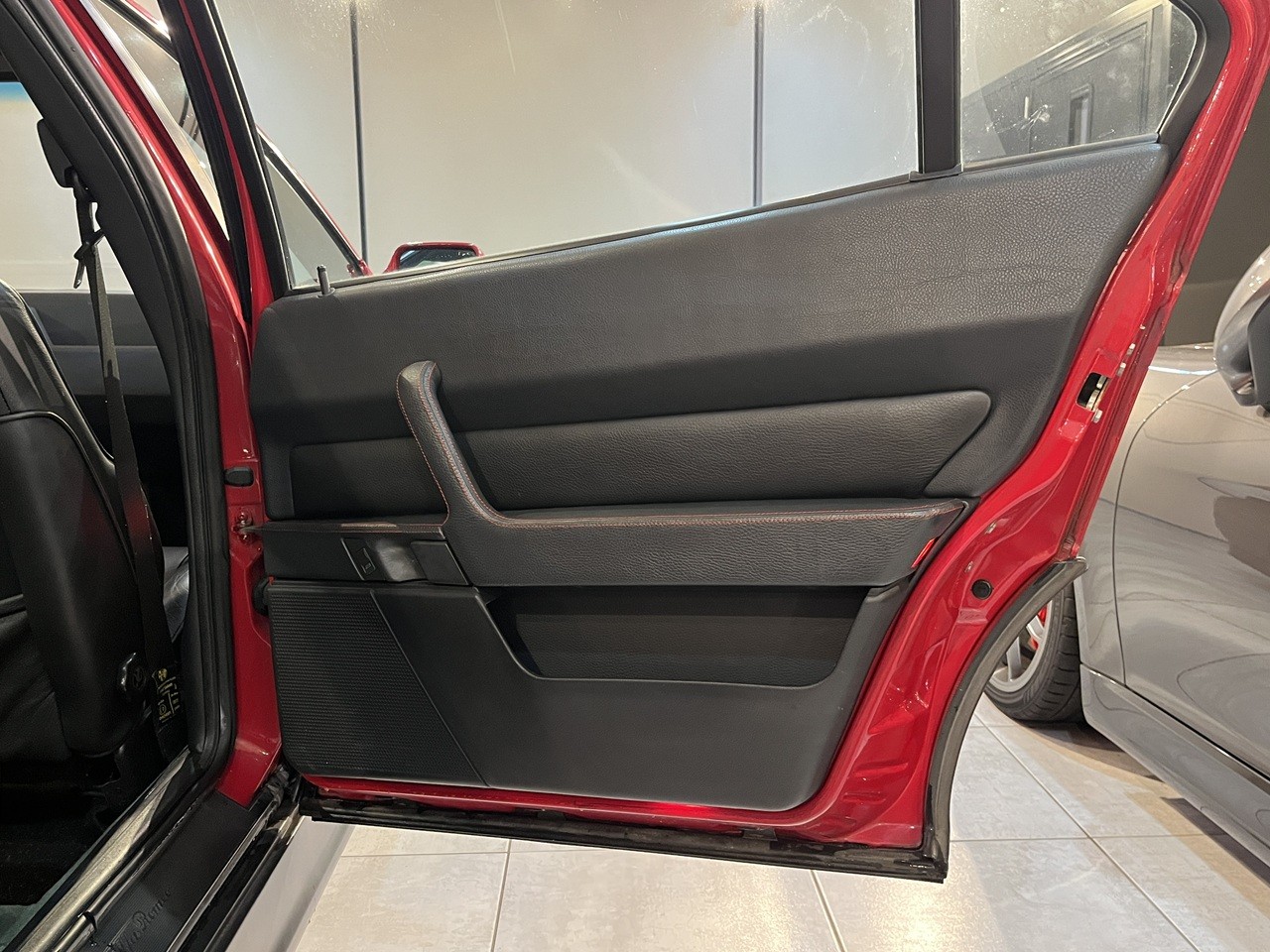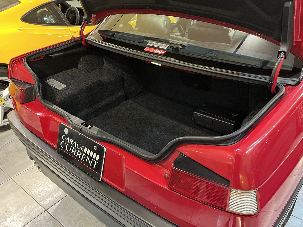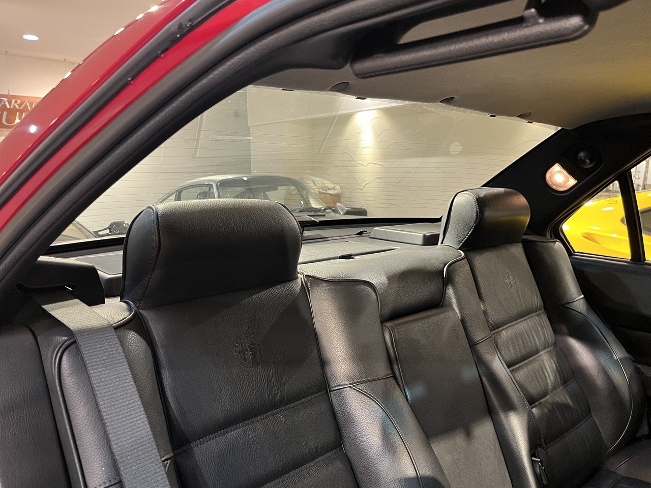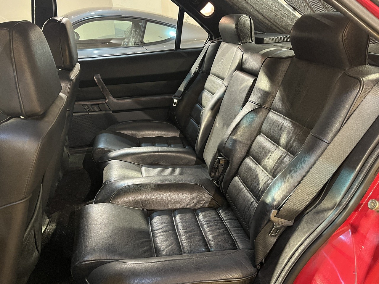 ボディカラーはロッソアルファ。内装は質感高いブラックレザーで仕立て上げられており、フラッグシップサルーンの名に恥じない快適で上質な空間を提供。