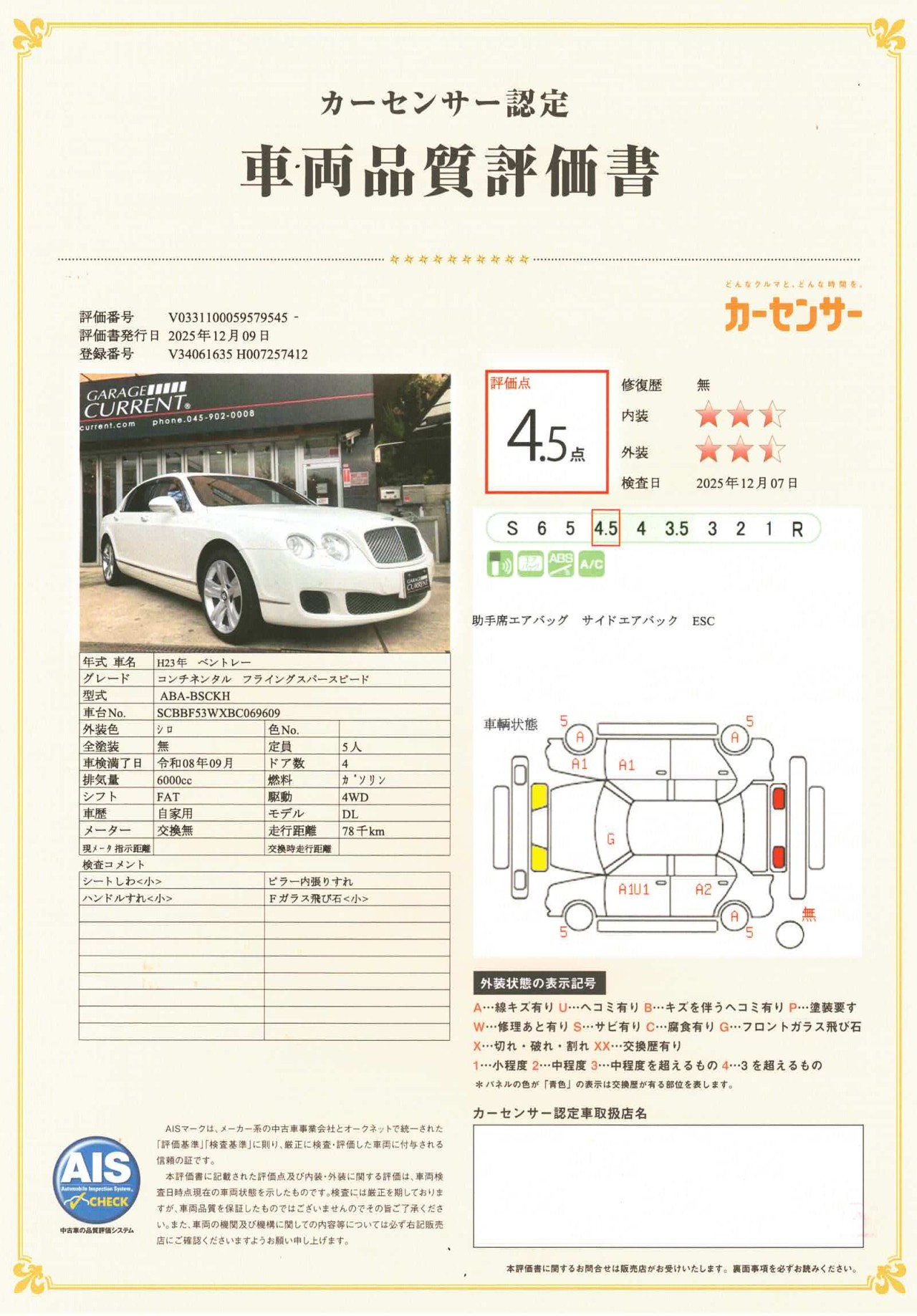 2011年 ベントレー コンチネンタルフライングスパー スピード/ディーラー車/ユーザー様買取車輌/
