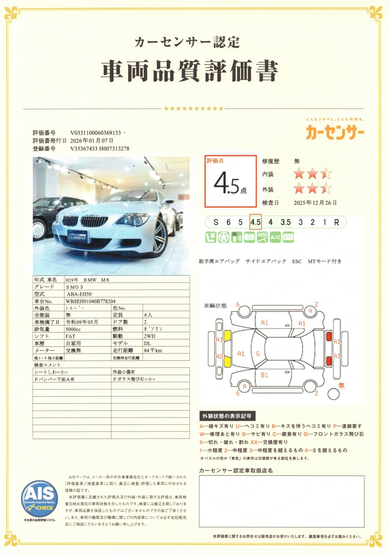 2007年 BMW M6クーぺ(E63)/ディーラー車/