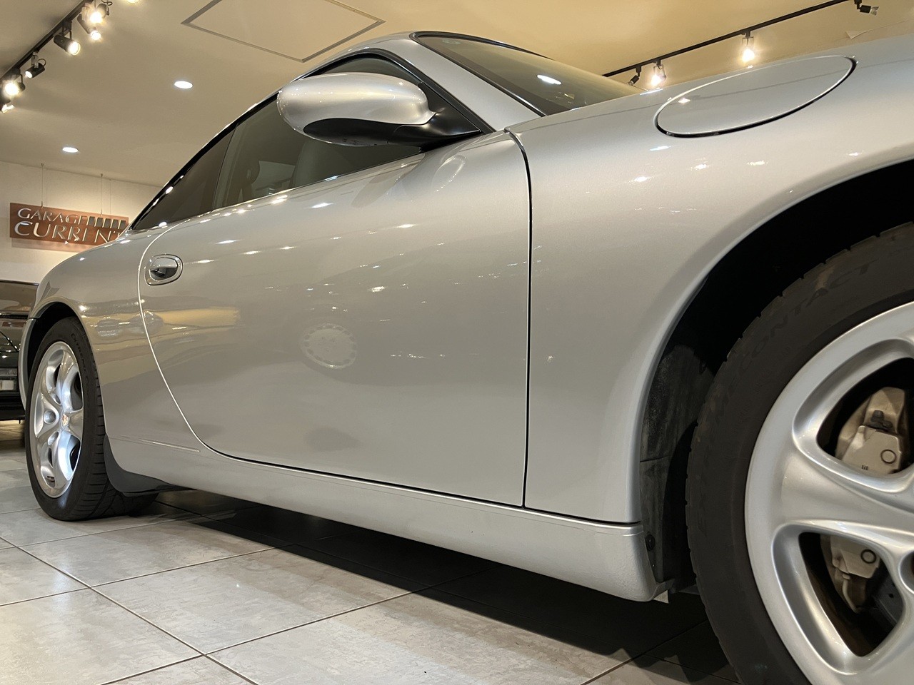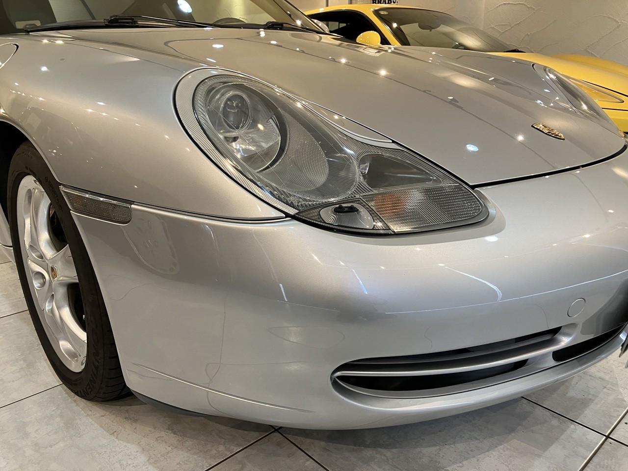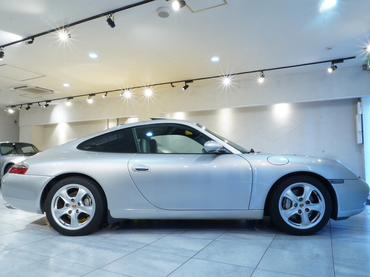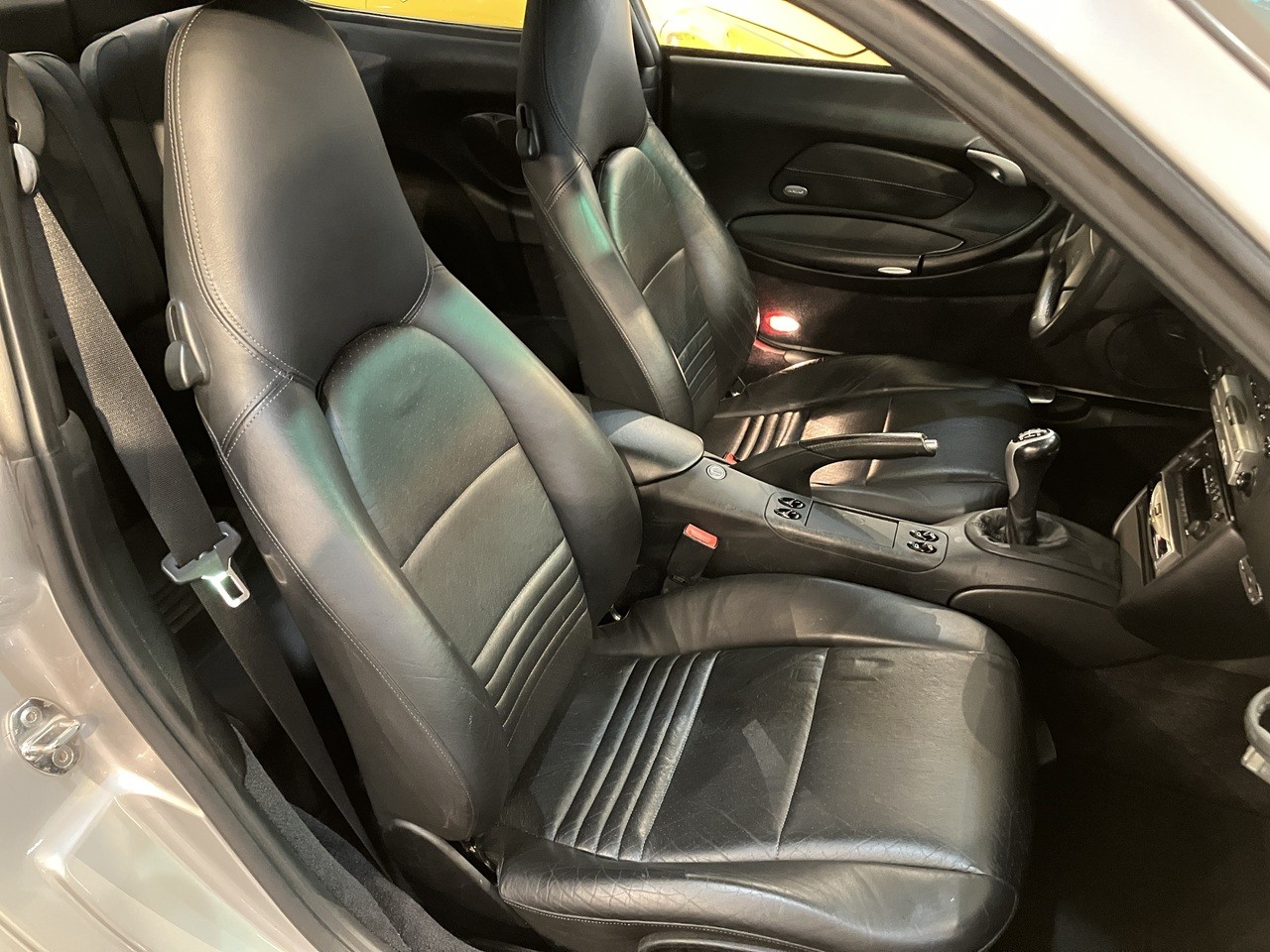 アークティックシルバーの外装色はポルシェのナショナルカラーともいえるカラーの一つですね。この996の丸っとしたデザインとの親和性のあるカラーリングです。