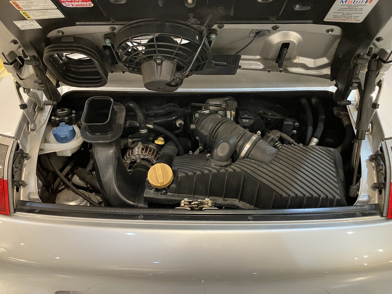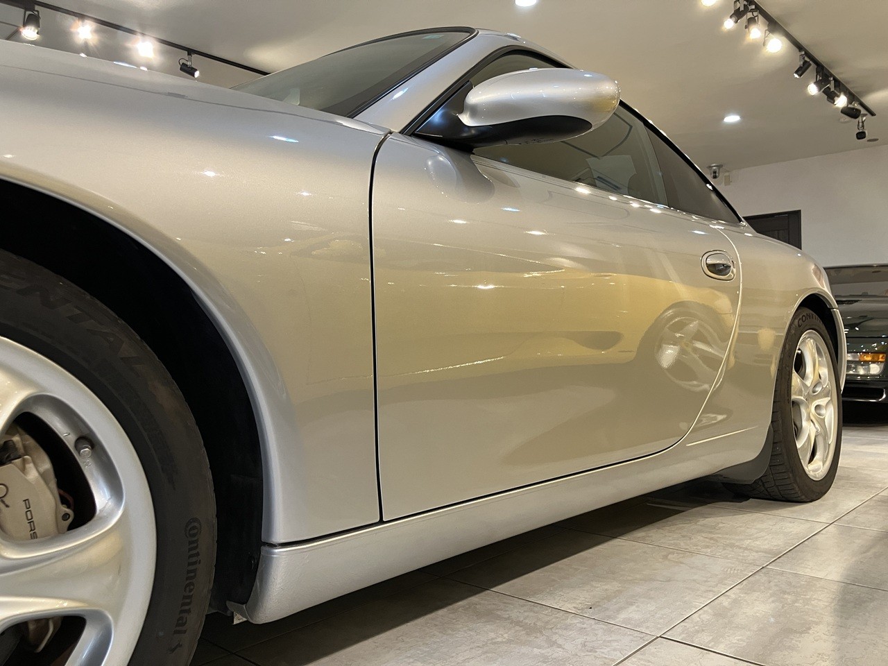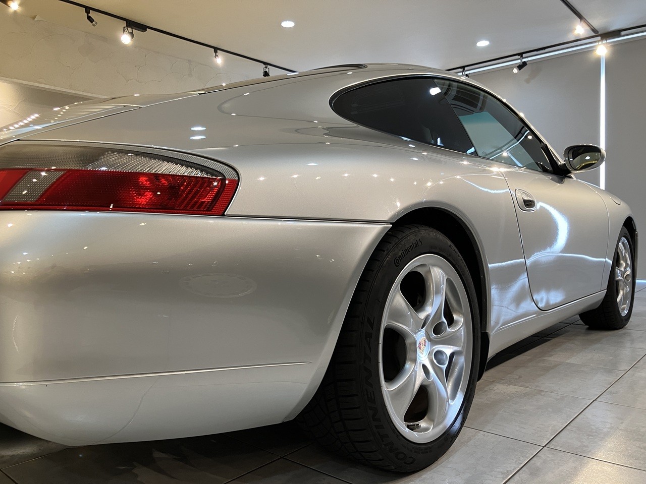 アークティックシルバーの外装色はポルシェのナショナルカラーともいえるカラーの一つですね。この996の丸っとしたデザインとの親和性のあるカラーリングです。