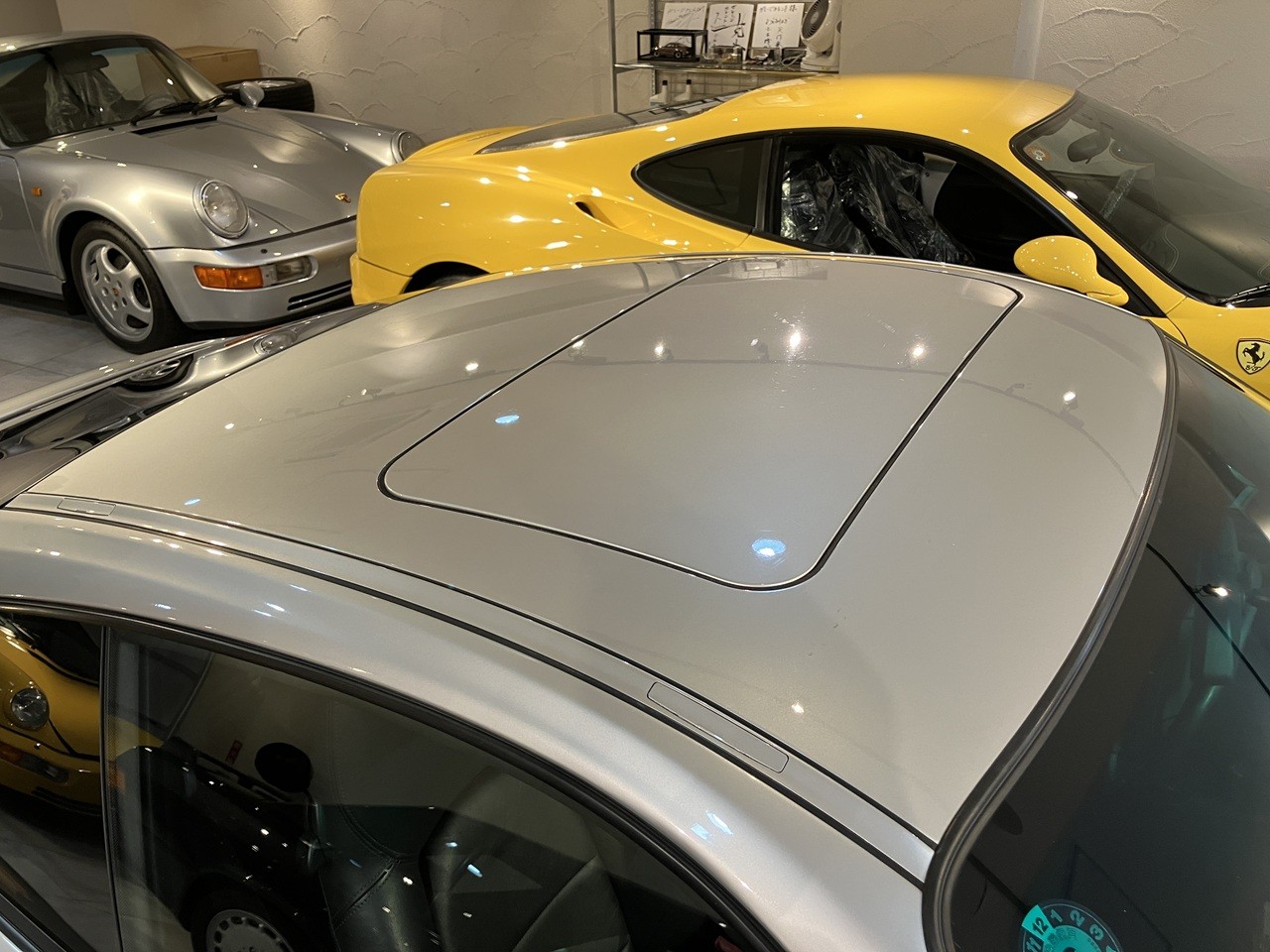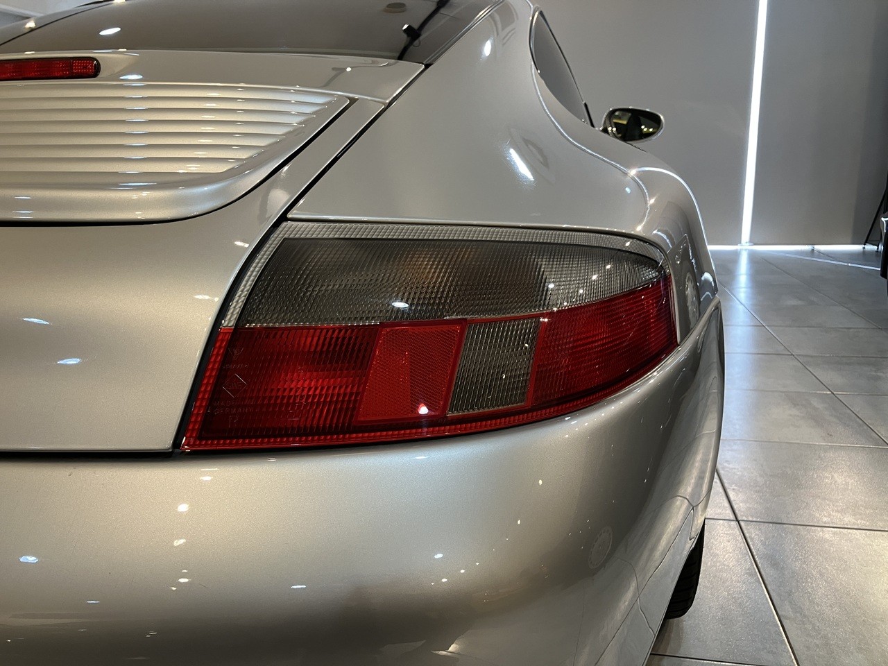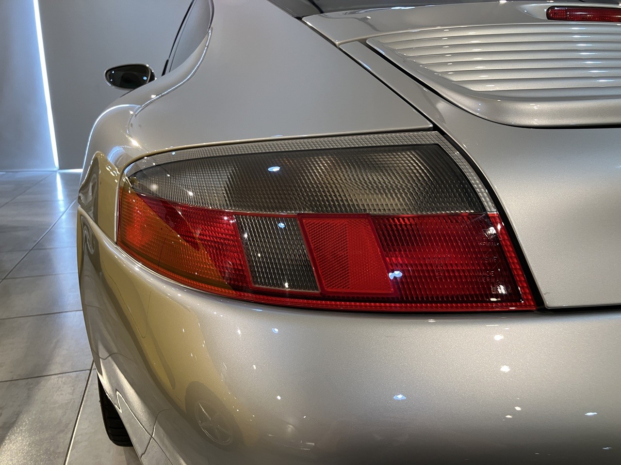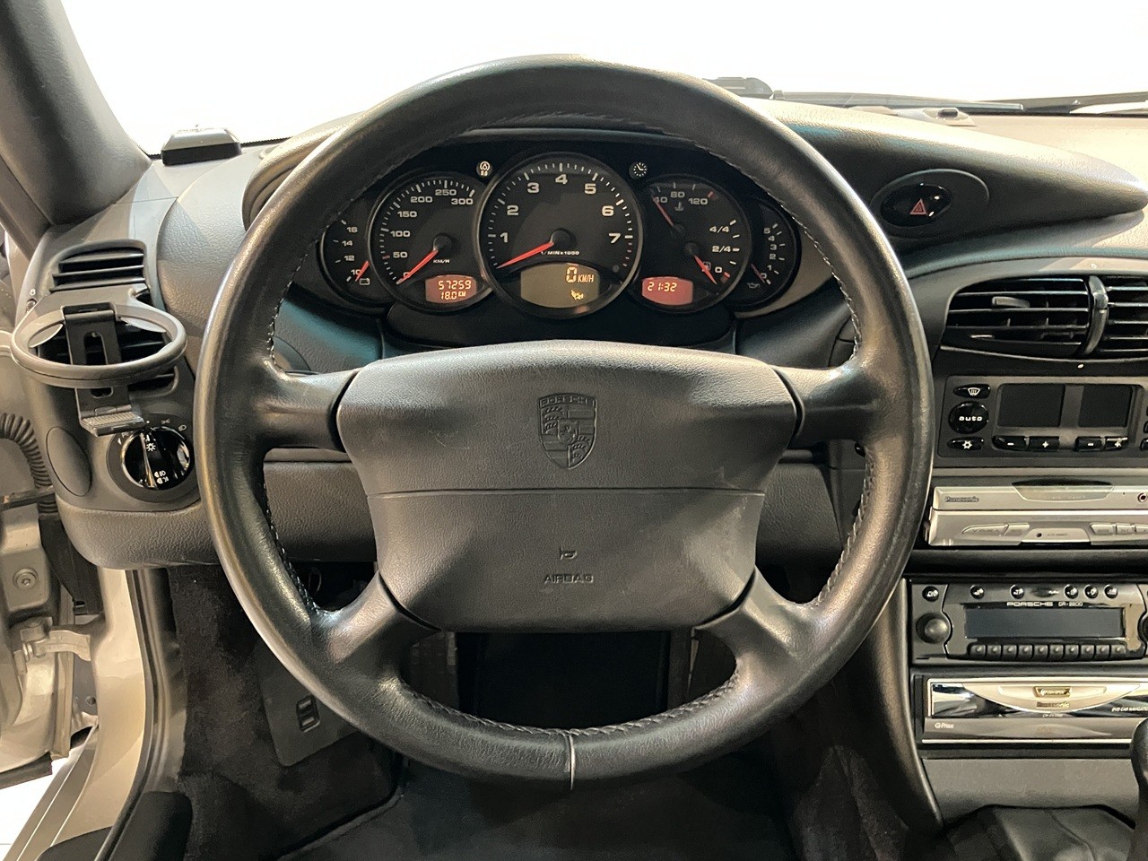 アークティックシルバーの外装色はポルシェのナショナルカラーともいえるカラーの一つですね。この996の丸っとしたデザインとの親和性のあるカラーリングです。