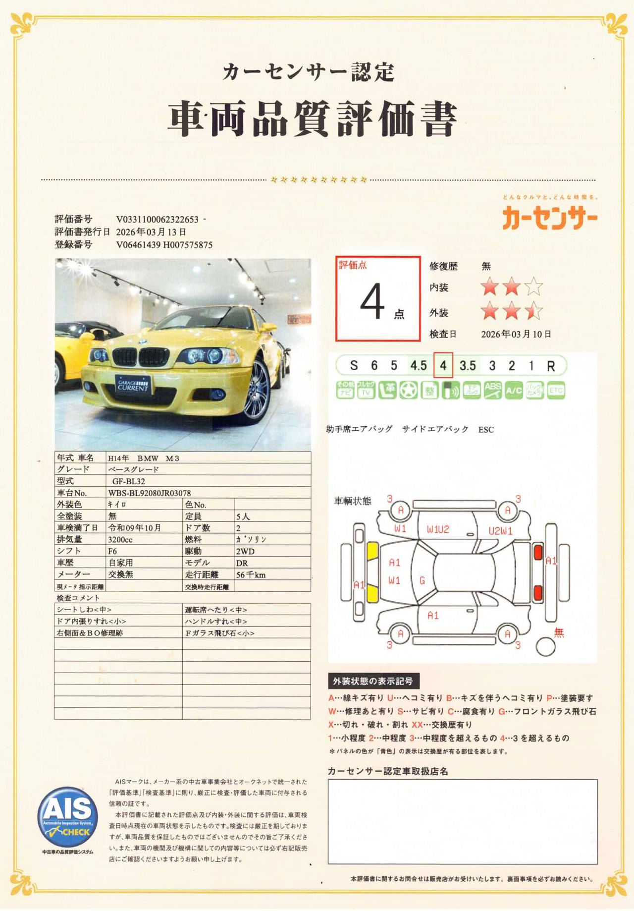 BMW M3 BMW M3(E46) フェニックスイエロー 6速MT 右ハンドル キウイナッパレザー ユーザー様直接買取車輌
