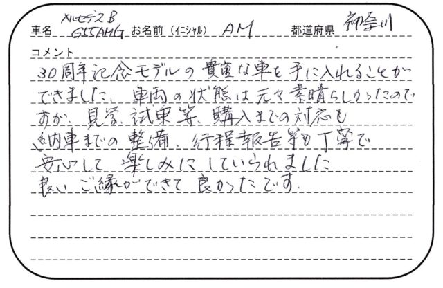 輸入名車専門店ガレージカレントでお車を購入頂いたお客様の声です! 掲載を許可して下さったお客様のみ載せております。